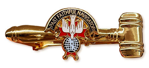Past Faithful Navigator Tie-Bar. Size- 2-1/8". Gold Plated with 4th Degree Emblem.